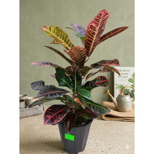 Внешний вид: Крупные кожистые листья с ярким узором. Цвета варьируются от желтого и оранжевого до ярко-красного и почти черного.